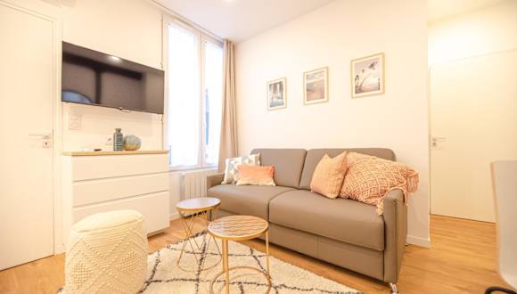 Cosy home in Paris Center - With AC bietet eine Unterkunft mit kostenlosem WLAN und einige Wohneinheiten sind klimatisiert. Die Ausstattung umfasst Bereiche zum Sitzen und Essen sowie einen Flachbild-TV.