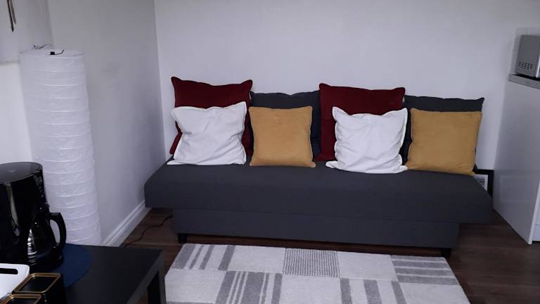 Das Apartment verfügt über ein Schlafzimmer, ein Wohnzimmer und eine voll ausgestattete Küche. Es bietet Platz für eine angenehme Übernachtung. Die Küche ist mit einem Kühlschrank und einer Kaffeemaschine ausgestattet. Das Badezimmer verfügt über eine Dusche und einen Haartrockner. Handtücher und Bettwäsche werden gestellt, um den Gästen den Aufenthalt so angenehm wie möglich zu gestalten.