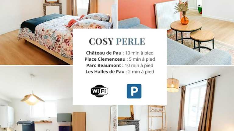 Das Cosy Perle - T3 - Quartier des halles ist eine Ferienwohnung in Pau, die Übernachtungsmöglichkeiten mit einem Privatparkplatz sowie kostenlosem WLAN bietet. Die Unterkunft zeichnet sich durch ihre zentrale Lage in der Nähe von verschiedenen Sehenswürdigkeiten aus.