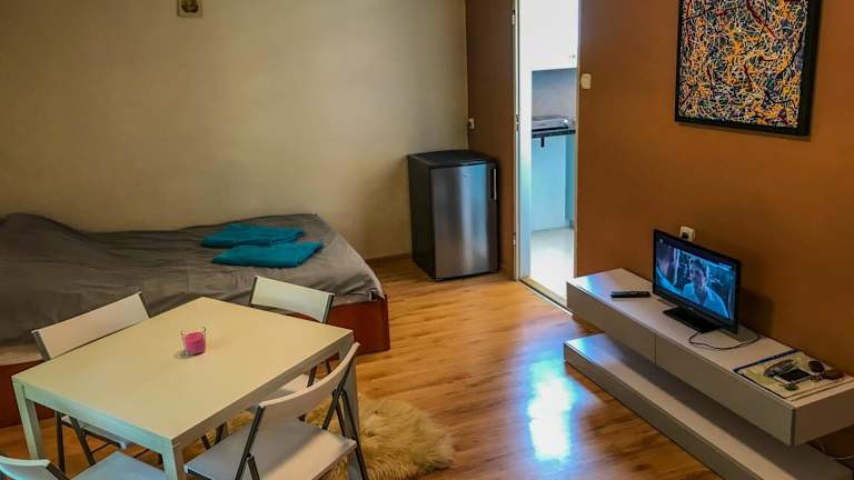 Das Cosy studio in quiet location bietet eine komfortable Ferienwohnung mit einem Kinderspielplatz und einem Anwendungszentrum für Ausflüge. Die Unterkunft ist mit kostenlosem WLAN und Zimmerservice ausgestattet und bietet unter anderem einen Fahrradverleih sowie eine Autovermietung. Es ist zudem eine Nichtraucherunterkunft, in der Haustiere auf Anfrage gestattet sind.