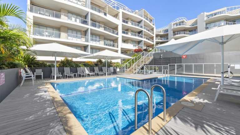 Das Cote D'Azur Resort in Nelson Bay bietet moderne Apartments zur Selbstverpflegung mit Meerblick. Hier können Sie einen entspannten Aufenthalt genießen und gleichzeitig die Annehmlichkeiten wie den Außenpool, den Fitnessraum und die Sauna nutzen. Die Lage des Resorts ist ideal, nur wenige Gehminuten vom Yachthafen D'Albora entfernt und in der Nähe von Golfplätzen, einem Bowling Club und einem Supermarkt.