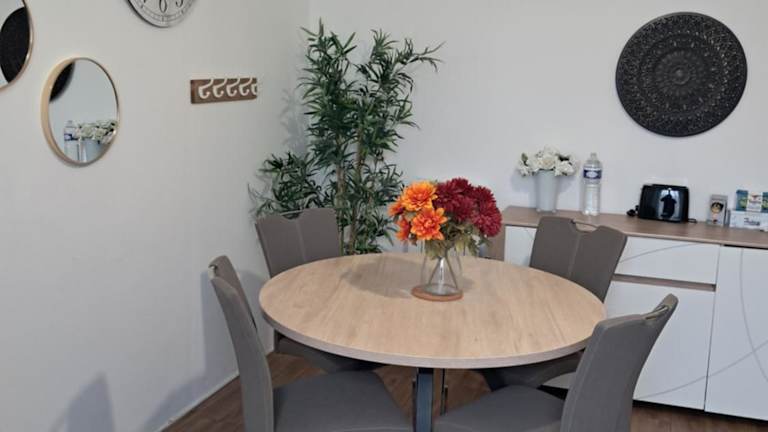 Die Ferienwohnung verfügt über 2 Schlafzimmer, eine Küche mit Kühlschrank und Ofen sowie ein Badezimmer mit Dusche, Haartrockner und Waschmaschine. Ein Flachbild-TV ist ebenfalls vorhanden.