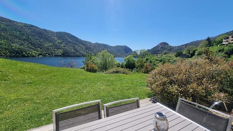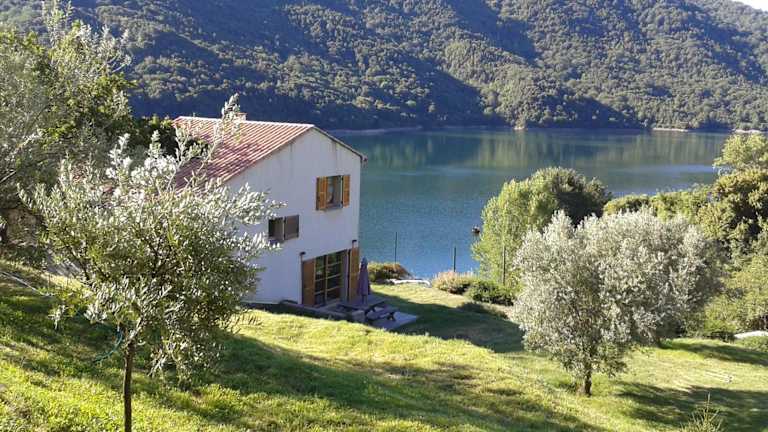 Côté Lac Tolla bietet Übernachtungsmöglichkeiten mit kostenlosem WLAN und Klimaanlage. Das Ferienhaus ist umgeben von einem Garten und verfügt über Grillmöglichkeiten. Kostenfreie Privatparkplätze sind ebenfalls vorhanden.