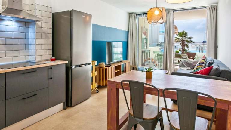 Die Ferienwohnung verfügt über 1 Schlafzimmer, ein Wohnzimmer mit Flachbild-TV, eine gut ausgestattete Küche, die mit einem Kühlschrank und Geschirrspüler ausgestattet ist, sowie ein Badezimmer mit Dusche. Handtücher und Bettwäsche werden bereitgestellt.