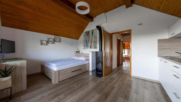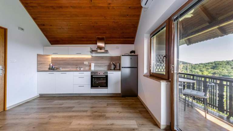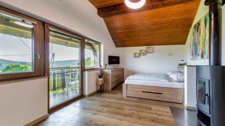 Das Cottage befindet sich in einer idyllischen Umgebung, umgeben von Weinbergen und in der Nähe des Flusses Kolpa. Die Lage bietet zahlreiche Möglichkeiten für Outdoor-Aktivitäten wie Wandern, Radfahren und Angeln. Die malerische Landschaft lädt zum Entspannen und Genießen ein. Der nächstgelegene Flughafen Zagreb ist nur 83 km entfernt.