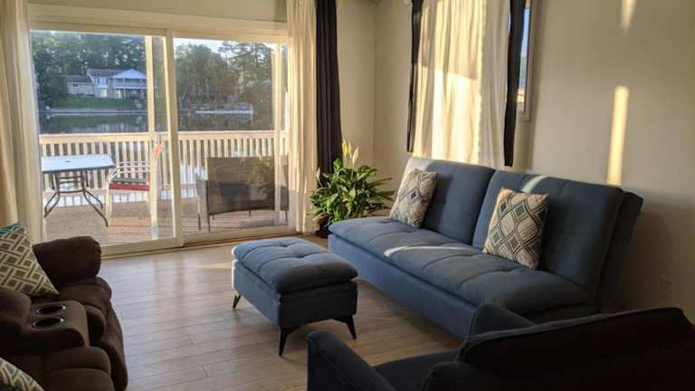 Verbringen Sie einen erholsamen Aufenthalt im Cottage with River Front & minutes away from Beach in Wasaga Beach. Das Apartment bietet einen malerischen Blick auf den Fluss, kostenfreies WLAN und Privatparkplätze. Genießen Sie die Ruhe des Gartens und der Terrasse und erkunden Sie die Umgebung mit Aktivitäten wie Wandern und Angeln. Das klimatisierte Apartment verfügt über 4 Schlafzimmer, ein geräumiges Wohnzimmer, eine voll ausgestattete Küche und 3 Badezimmer. Ein Flachbild-TV sorgt für Unterhaltung. Entdecken Sie das Tay River Basin und den GO-Bahnhof Barrie South, die in der Nähe liegen. Der Regionalflughafen Lake Simcoe ist ebenfalls gut erreichbar.