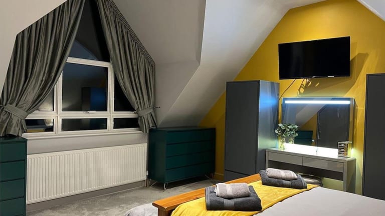 Verbringen Sie einen erholsamen Aufenthalt im Bank Cottage, einer luxuriösen Residenz mit 4,5 Sternen in Oswestry. Genießen Sie den atemberaubenden Blick und entspannen Sie im Whirlpool. Die geräumigen Zimmer sind mit Kaminen und voll ausgestatteten Küchen ausgestattet. Nutzen Sie auch die Annehmlichkeiten des Full-Service-Wellnessbereichs und das kostenlose WLAN. Kostenfreie Parkplätze stehen ebenfalls zur Verfügung.