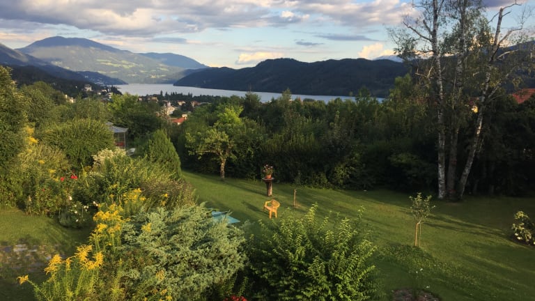 -) Qualitätssiegel des Landes Kärnten; -) luxuriöse und geräumige Ferienwohnung mit 125 m2 Wohnfläche und Platz für 4 - 6 Personen; -) 2 Schlafzimmer und 1 Badezimmer mit WC, Bidet und Badewanne; außerdem 2. WC extra; -) voll ausgestattete Küche mit Geschirrspüler und geräumiges Wohnzimmer mit SAT-TV; -) Panoramablick auf Garten, See und die umliegenden Berge; -) große Terrasse mit Essplatz;