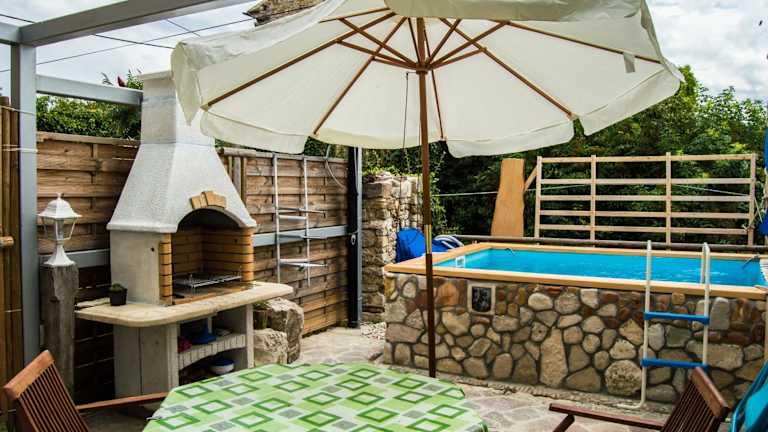 Das klimatisierte Ferienhaus verfügt über 2 Schlafzimmer, ein Wohnzimmer, eine voll ausgestattete Küche und ein Badezimmer. Handtücher und Bettwäsche werden gestellt. Genießen Sie den Komfort eines eigenen Pools und eines Gartens mit Grillmöglichkeiten. Kostenfreies WLAN und kostenfreie Privatparkplätze stehen zur Verfügung.