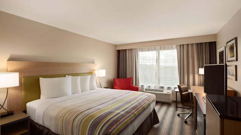 Die Zimmer im Hotel sind komfortabel eingerichtet und verfügen über einen Flachbild-Kabel-TV und ein eigenes Badezimmer. Zur Ausstattung gehören auch ein Schreibtisch, ein Kühlschrank und eine Mikrowelle. Es gibt auch rollstuhlgerechte Zimmer mit barrierefreien Badezimmern.