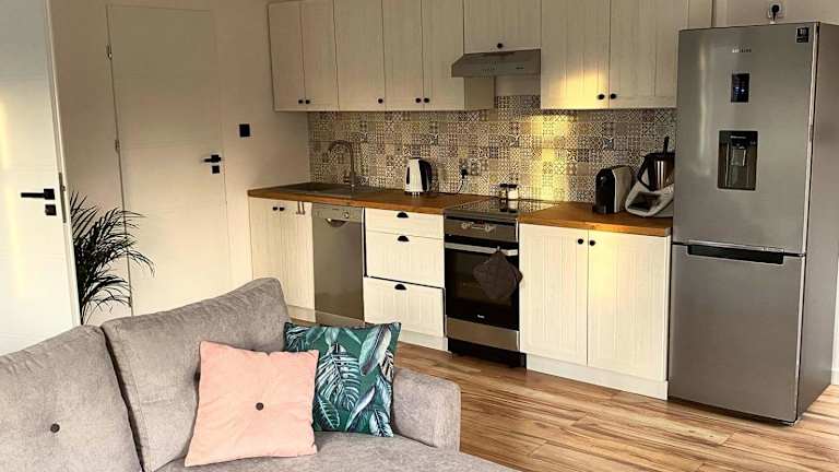 Das Apartment im Countryside Retreat bietet ein gemütliches Schlafzimmer, ein Wohnzimmer und eine voll ausgestattete Küche mit Kühlschrank und Kaffeemaschine. Das Badezimmer verfügt über eine Dusche und einen Haartrockner. Handtücher und Bettwäsche werden gestellt, um den Aufenthalt angenehm zu gestalten. Vom Apartment aus genießen Gäste einen schönen Blick auf den Garten.