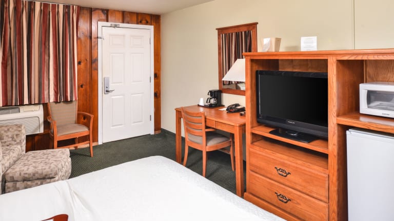 Die klimatisierten Zimmer im Courtesy Inn sind ausgestattet mit kostenfreiem WLAN, einer Mikrowelle, einem Kühlschrank und einem Flachbild-Kabel-TV. Des Weiteren stehen ein Schreibtisch und eine Kaffeemaschine zur Verfügung. Die Zimmer sind Nichtraucherzimmer und bieten eine gut gestaltete Umgebung für einen komfortablen Aufenthalt.