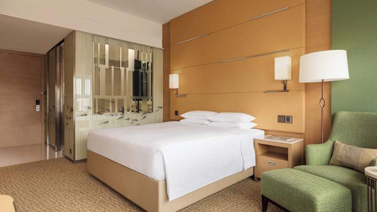 Das Courtyard by Marriott Hong Kong Sha Tin verfügt über 524 Zimmer, die auf 30 Etagen verteilt sind. Jedes Zimmer ist elegant eingerichtet und mit modernen Annehmlichkeiten ausgestattet, darunter ein Flachbild-Kabel-TV, eine iPod-Dockingstation und kostenfreies WLAN. Die Zimmer bieten auch einen Sitzbereich und ein geräumiges Badezimmer mit Marmorböden, einer Regendusche und flauschigen Bademänteln.
