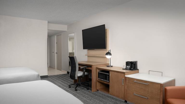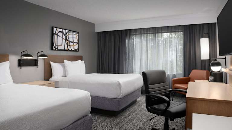 Alle Zimmer im Courtyard by Marriott Orlando East/UCF Area sind modern und komfortabel eingerichtet. Sie verfügen über einen Flachbild-Kabel-TV, einen Schreibtisch mit Steckdosen und einen Kühlschrank. WLAN nutzen Sie in allen Bereichen des Hotels kostenfrei.