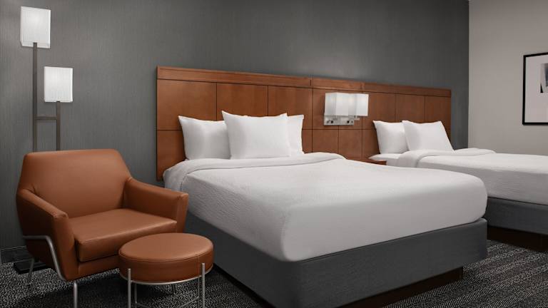 Die Zimmer sind klimatisiert und bieten eine Heizung, mit Teppichböden ausgestattete Bereiche, ein Doppelbett und ein Sofabett. Zu den weiteren Annehmlichkeiten zählen eine Minibar, Schreibtisch, Kühlschrank, Mikrowelle sowie Tee-/Kaffeemaschine. Im Badezimmer gibt es Dusche oder Badewanne, Föhn und Kosmetikartikel. Rollstuhlgerechte Zimmer sind ebenfalls verfügbar.