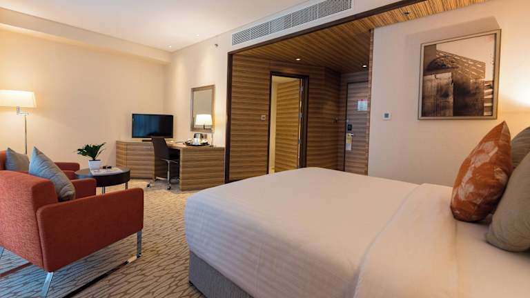 Die Zimmer im Courtyard by Marriott World Trade Center sind modern eingerichtet und bieten eine Vielzahl von Annehmlichkeiten. Jedes Zimmer verfügt über einen Flachbild-TV, luxuriöse Bettwäsche und einen gut beleuchteten Arbeitsbereich. Das Marmorbad ist mit einer Badewanne und einer Dusche ausgestattet. In der Suite gibt es zusätzlich ein separates Wohnzimmer. Kostenloses Highspeed-WLAN steht in allen Bereichen des Hotels zur Verfügung.