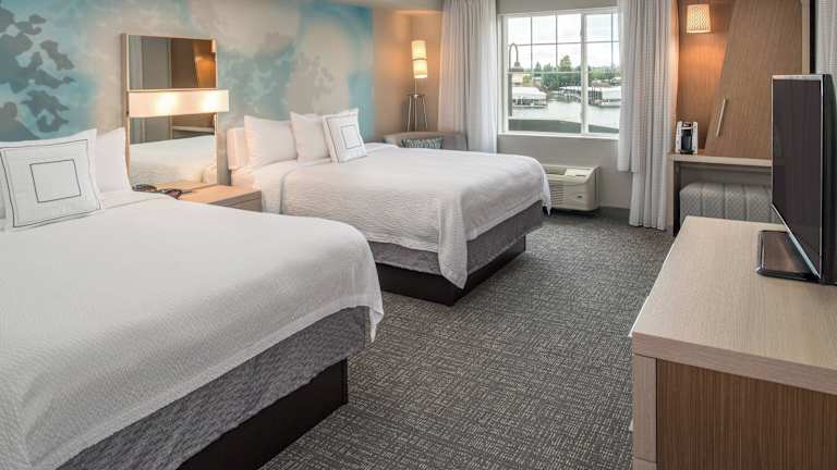 Das Courtyard by Marriott Portland North ist ein charmantes Hotel mit atemberaubendem Blick auf den Columbia River und die umliegenden Berge. Die Zimmer sind stilvoll eingerichtet und bieten modernen Komfort wie LCD-TV, Kühlschrank, Mikrowelle und Kaffeemaschine. Das Hotel bietet auch kostenfreien Zugang zum Fitnesscenter und WLAN in allen Bereichen. Genießen Sie köstliche Speisen im Bistro und entspannen Sie auf der Außenterrasse mit Blick auf den Fluss und die Berge. Das Hotel ist günstig gelegen und nur eine kurze Fahrt von der Innenstadt von Portland entfernt.