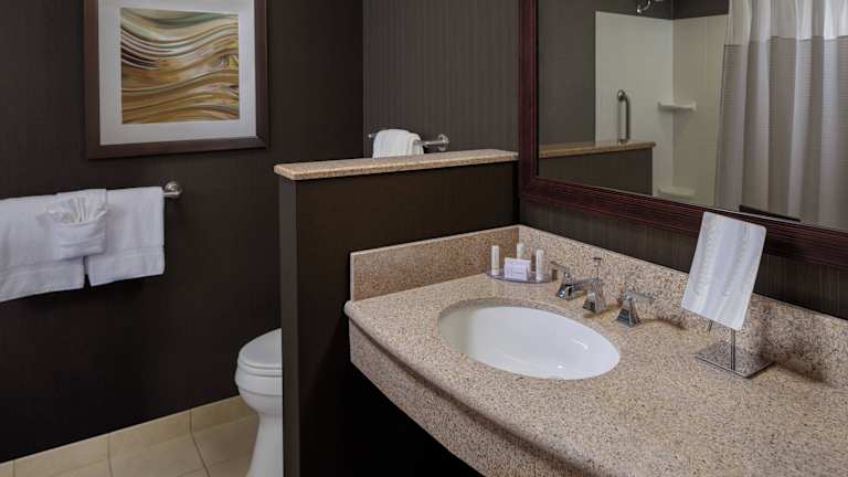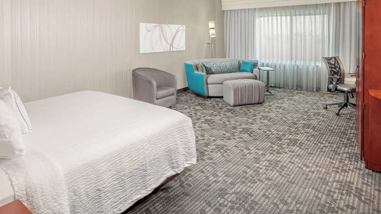 Die Zimmer im Courtyard by Marriott Houston Medical Center/NRG Park sind komfortabel und gut ausgestattet. Jedes Zimmer verfügt über einen kompakten Kühlschrank, eine Kaffeemaschine und Kabel-TV mit Premium-Filmkanälen. Ein Schreibtisch mit ergonomischem Stuhl und ein Bügeleisen/-brett sind ebenfalls vorhanden. Die Badezimmer bieten einen Haartrockner und kostenfreie Pflegeprodukte.