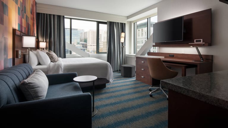 Die Zimmer im Courtyard Seattle Downtown sind komfortabel und mit modernen Annehmlichkeiten ausgestattet. Kostenloses WLAN und Flachbild-TVs sorgen für Unterhaltung und Bequemlichkeit. Jedes Zimmer verfügt über einen Schreibtisch, einen Minikühlschrank und eine Kaffeemaschine. Die Unterkunft bietet auch eine Bar mit einer großen Auswahl an Getränken, Spirituosen und Snacks.