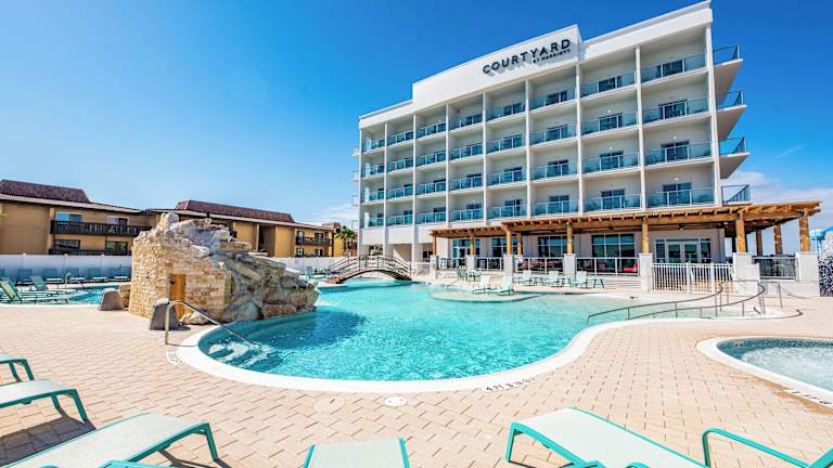 Das Courtyard South Padre Island bietet Übernachtungsmöglichkeiten mit Blick auf den Strand. Es handelt sich um eine Unterkunft mit einem Außenpool, einem Fitnesscenter und einem Restaurant, die verschiedene Annehmlichkeiten für die Gäste bereitstellt, darunter Zimmerservice und eine rund um die Uhr besetzte Rezeption. Kostenfreies WLAN ist ebenfalls verfügbar.