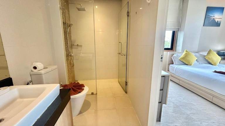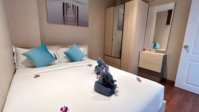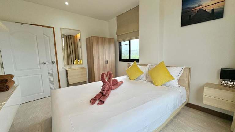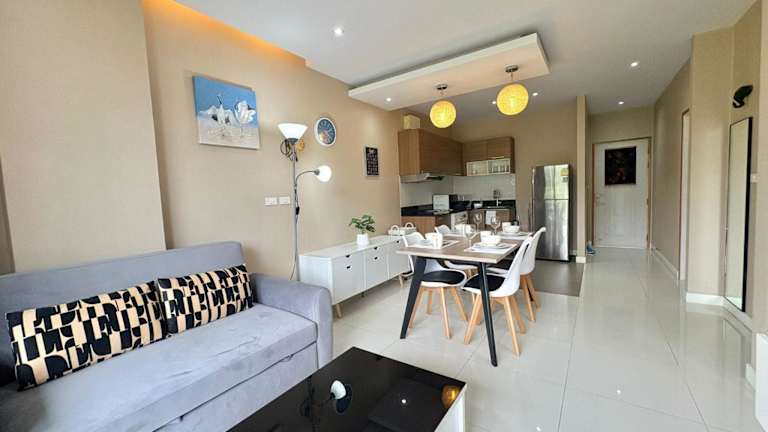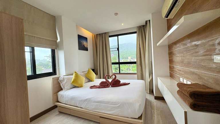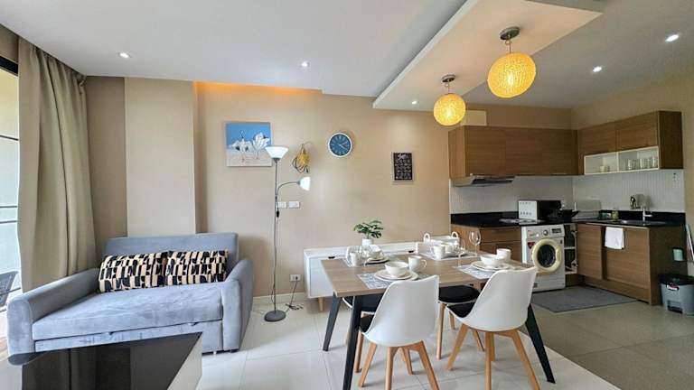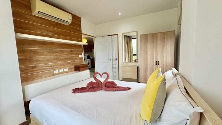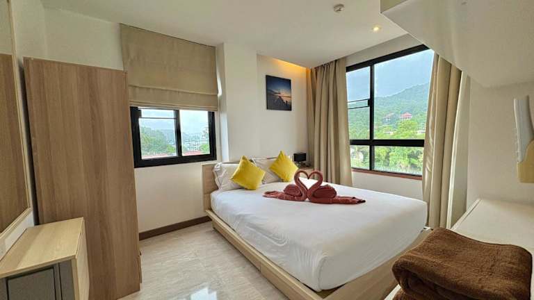 Cozy 2 bedrooms walk to Nai Harn beach ist eine Ferienwohnung auf der 4. Etage, die mit Bergblick und einer Terrasse sowie einem Balkon ausgestattet ist. Die Unterkunft bietet einen Außenpool und kostenlosen Privatparkplatz. Es handelt sich um eine Nichtraucherunterkunft, die von einem privaten Gastgeber geführt wird. Der Check-in ist zwischen 15:00 und 18:00 Uhr möglich, der Check-out von 08:00 bis 12:00 Uhr. Es sind keine Feierlichkeiten wie Junggesellen-/Junggesellinnenabschiede erlaubt. Die Mindestalter für den Check-in beträgt 18 Jahre.
