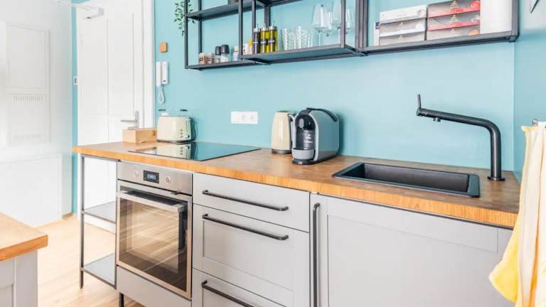 Die Ferienwohnung verfügt über eine voll ausgestattete Küche mit einem Kühlschrank und einer Kaffeemaschine, die für die Selbstverpflegung genutzt werden kann. Zu weiteren Verpflegungsmöglichkeiten liegen keine Informationen vor.