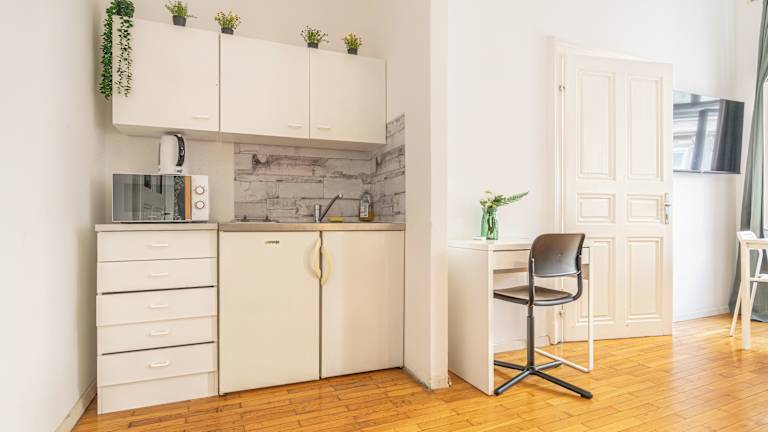 Die Unterkunft verfügt über eine voll ausgestattete Küche mit Kühlschrank und Ofen, ideal für die Zubereitung eigener Mahlzeiten. Es sind keine Informationen zu weiteren Verpflegungsmöglichkeiten vorhanden.