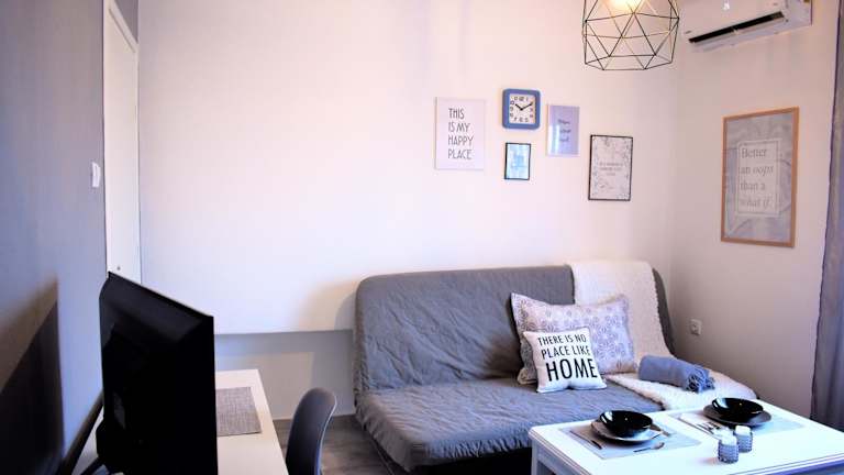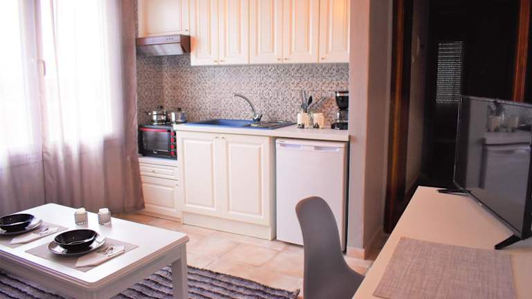 Die Unterkunft umfasst ein Schlafzimmer und ein Wohnzimmer, das mit einem Flachbild-TV ausgestattet ist. Eine voll ausgestattete Küche steht zur Verfügung, die mit einem Kühlschrank und einer Kaffeemaschine ausgestattet ist. Das Badezimmer bietet eine Dusche und kostenlose Pflegeprodukte. Die gesamte Ferienwohnung ist klimatisiert.