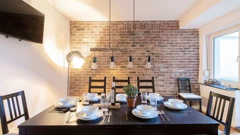 Im Cozy Apartment ° 7 beds ° 3 bed rooms können Sie Ihre eigenen Mahlzeiten in der voll ausgestatteten Küche zubereiten. Alternativ können Sie auch in den nahegelegenen Restaurants speisen und die lokale Küche genießen.
