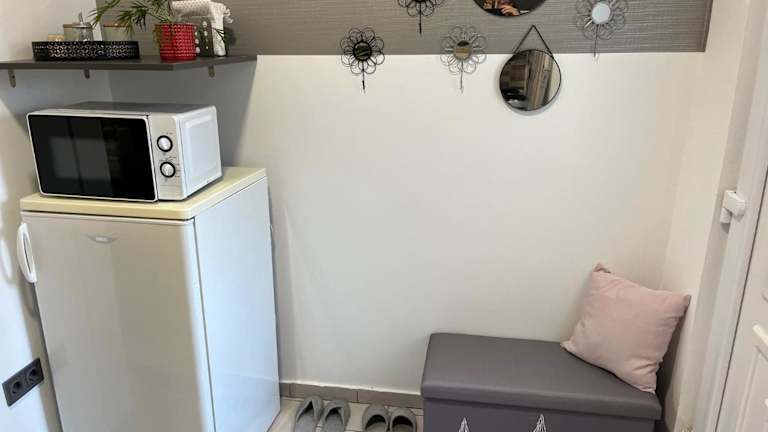 Die Ferienwohnung verfügt über 1 Schlafzimmer, eine gut ausgestattete Küche mit Kühlschrank und Mikrowelle, ein Wohnzimmer und einen Flachbild-TV.