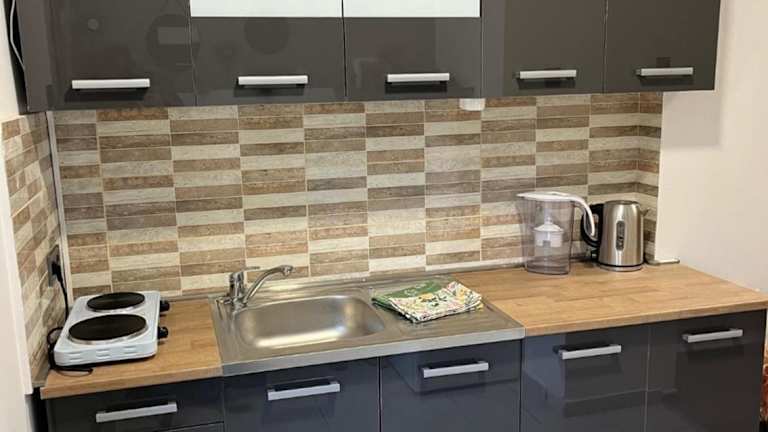 Die Unterkunft Cozy apartment close to M0 way bietet kostenloses WLAN, eine Terrasse und Klimaanlage. Diese Ferienwohnung befindet sich im Erdgeschoss.
