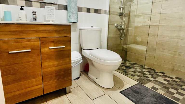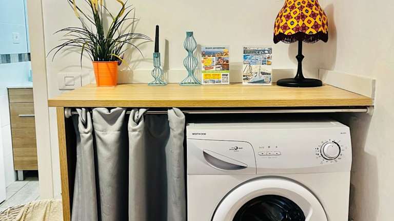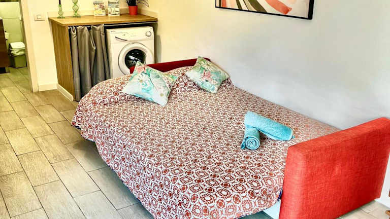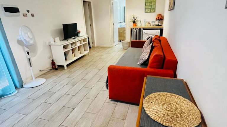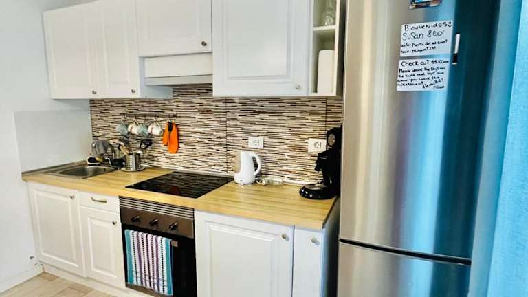 Die Wohnung besteht aus einem Schlafzimmer, einem Wohnzimmer und einer voll ausgestatteten Küche mit Kühlschrank und Kaffeemaschine. Ein Badezimmer mit Dusche und kostenfreien Pflegeprodukten ist ebenfalls vorhanden. Handtücher und Bettwäsche werden zur Verfügung gestellt.