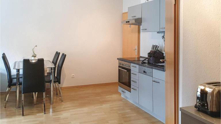 Die Ferienwohnung verfügt über zwei Schlafzimmer, ein Wohnzimmer und ein Badezimmer mit Dusche. Zudem ist eine voll ausgestattete Küche vorhanden, die einen Kühlschrank und eine Kaffeemaschine beinhaltet. Ein Fernseher ist ebenfalls vorhanden. Die gesamte Unterkunft ist eine Nichtraucherunterkunft.