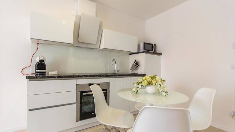 Das Apartment besteht aus 2 Schlafzimmern, einem Wohnzimmer sowie einer voll ausgestatteten Küche, die mit einem Kühlschrank und einer Kaffeemaschine ausgestattet ist. Zudem steht ein Badezimmer mit Dusche zur Verfügung. Die Unterkunft ist klimatisiert und komfortabel eingerichtet.