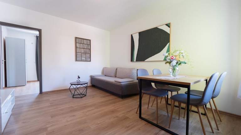 Die Unterkunft Cozy apartment with breakfast on request 1 bietet klimatisierte Übernachtungsmöglichkeiten mit kostenlosem WLAN und Zugang zu einer Terrasse. Die Unterkunft ist Nichtraucher und erlaubt es, ein Haustier pro Zimmer und Aufenthalt mitzubringen. Ein Parkplatz ist ebenfalls inbegriffen. Der Check-in ist von 14:00 bis 00:00 Uhr und der Check-out von 06:00 bis 10:00 Uhr möglich.
