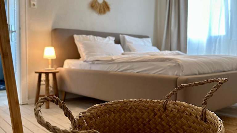 Die Ferienwohnung umfasst ein Schlafzimmer und ein Wohnzimmer, in dem sich eine voll ausgestattete Küche mit Kühlschrank und Kaffeemaschine befindet. Ein Badezimmer ist ebenfalls vorhanden, das mit einer Dusche und kostenlosen Pflegeprodukten ausgestattet ist. Bettwäsche und Handtücher werden bereitgestellt, und die Wohnung ist klimatisiert. Die Einrichtung ist auf einen komfortablen Aufenthalt ausgelegt.