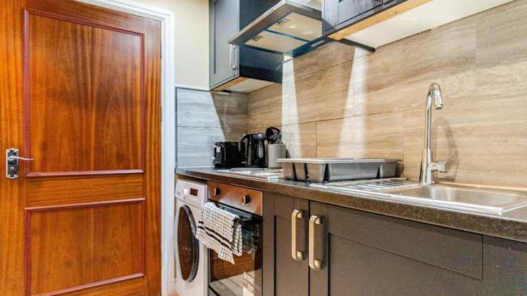 Die Ferienwohnung verfügt über 1 Schlafzimmer und ist mit einer modernen Küche ausgestattet, die einen Geschirrspüler und einen Ofen umfasst. Zusätzlich gibt es ein Badezimmer mit Dusche und kostenlosen Pflegeprodukten sowie eine Waschmaschine. Handtücher und Bettwäsche werden zur Verfügung gestellt. Die Unterkunft ist eine Nichtraucherunterkunft.