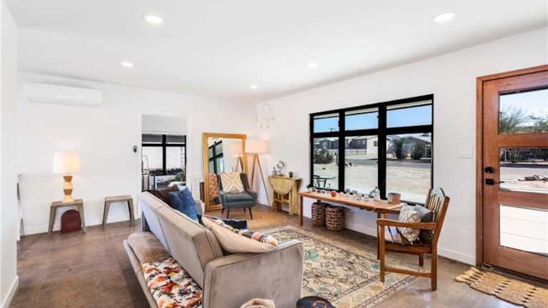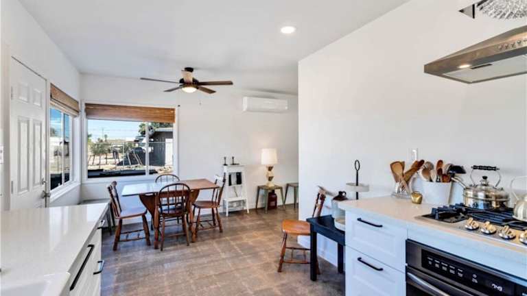 Verbringen Sie einen erholsamen Aufenthalt im Cozy Fresh Desert Hideaway, nur 5 Minuten von Joshua Tree entfernt. Dieses charmante Ferienhaus bietet eine idyllische Umgebung mit einem Garten und einer Terrasse, kostenfreiem WLAN und atemberaubendem Bergblick. Genießen Sie die Freiheit und Privatsphäre, während Sie die zahlreichen Aktivitäten wie Wandern, Reiten und Radfahren in der Umgebung erkunden. Das klimatisierte Ferienhaus bietet mit 3 Schlafzimmern, einem gemütlichen Wohnzimmer und einer voll ausgestatteten Küche alles, was Sie für einen angenehmen Aufenthalt benötigen. Handtücher und Bettwäsche werden gestellt, und der kostenlose Privatparkplatz steht Ihnen zur Verfügung. Entdecken Sie den Fortynine Palms Oasis Trail, der nur 11 km entfernt liegt, oder besuchen Sie den Arch Rock Trailhead, der in 17 km erreichbar ist. Der internationale Flughafen Palm Springs ist nur 84 km entfernt.