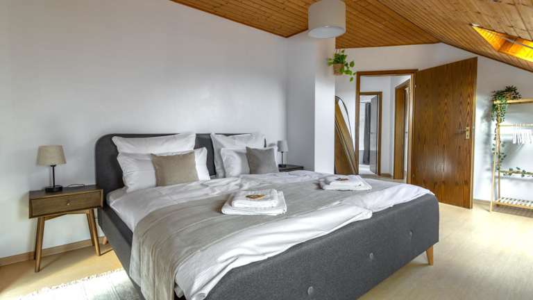 Die Ferienwohnung umfasst 4 Schlafzimmer, ein Wohnzimmer mit Flachbild-TV sowie eine gut ausgestattete Küche, die mit einem Kühlschrank und einem Geschirrspüler eingerichtet ist. Es stehen insgesamt 2 Badezimmer mit einer Dusche zur Verfügung. Handtücher und Bettwäsche werden bereitgestellt.