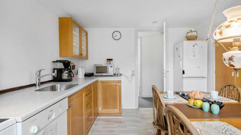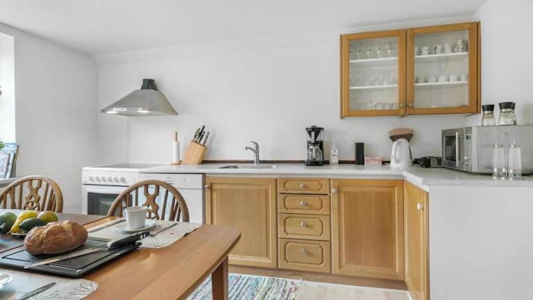 Die Unterkunft verfügt über eine voll ausgestattete Küche mit Kühlschrank und Geschirrspüler, um Selbstversorgungsmöglichkeiten zu gewährleisten.