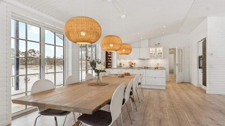 Das Ferienhaus verfügt über 5 Schlafzimmer und ist mit einem Flachbild-TV sowie einer voll ausgestatteten Küche ausgestattet. Die Küche beinhaltet einen Kühlschrank, Geschirrspüler, Waschmaschine, Ofen und Mikrowelle, was eine komfortable Selbstverpflegung ermöglicht.