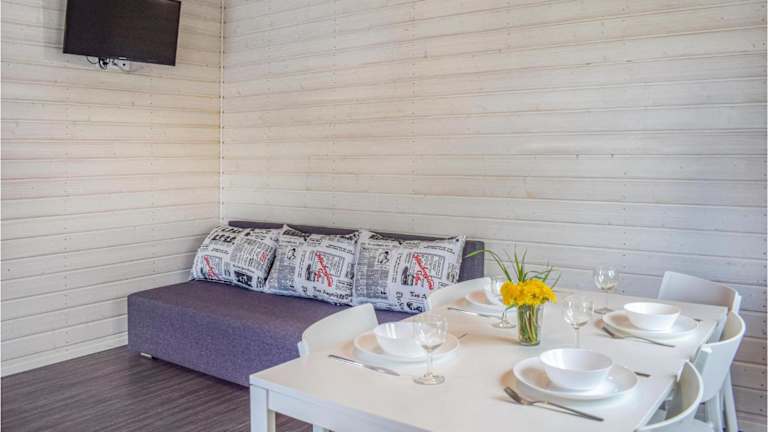 Das Ferienhaus ist ausgestattet mit zwei Schlafzimmern, einem TV, einem Essbereich und einer Küche, die über einen Kühlschrank verfügt. Zudem gibt es ein Wohnzimmer. Die Unterkunft ist komplett als Nichtraucherunterkunft ausgewiesen.