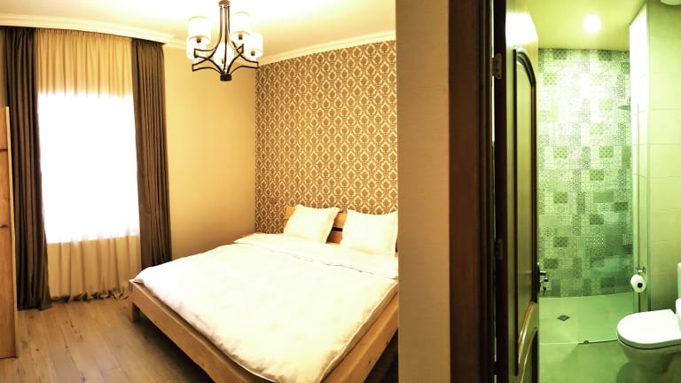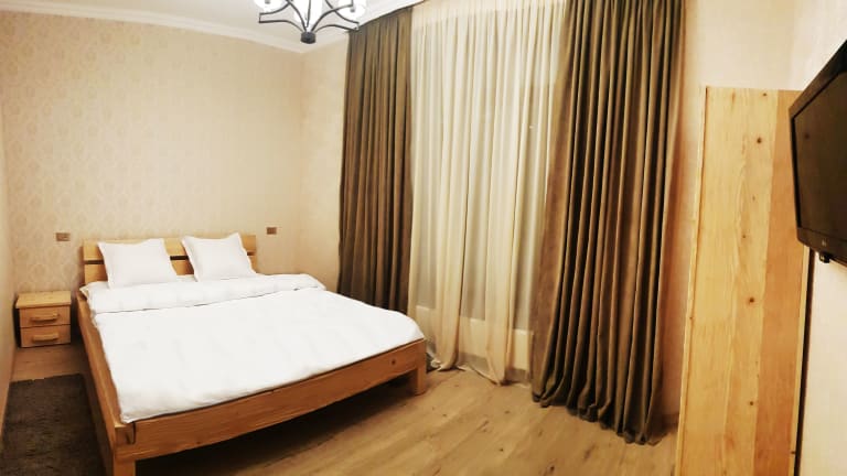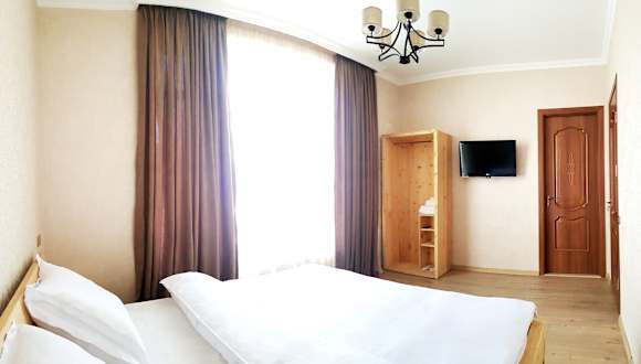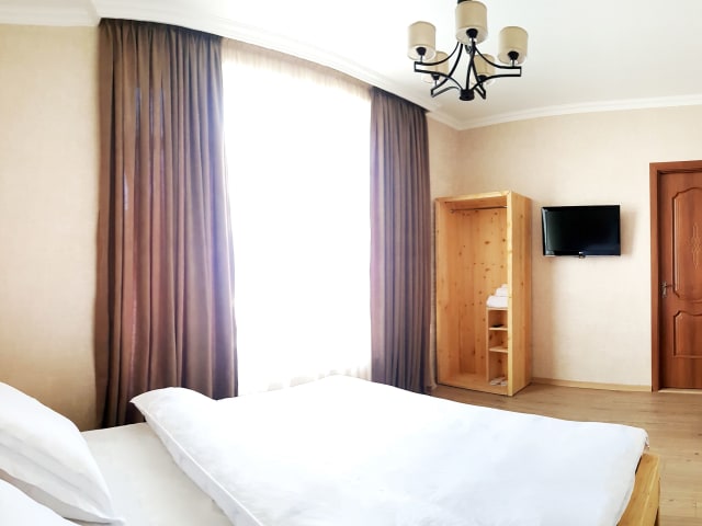 Das Cozy Hotel Kazbegi bietet gemütliche Zimmer mit moderner Ausstattung. Jedes Zimmer verfügt über einen Kleiderschrank, einen Flachbild-TV und ein eigenes Badezimmer. Die Zimmer sind geschmackvoll eingerichtet und bieten eine komfortable Atmosphäre für einen erholsamen Aufenthalt. Zur weiteren Ausstattung gehören Bettwäsche, Handtücher und eine Minibar.