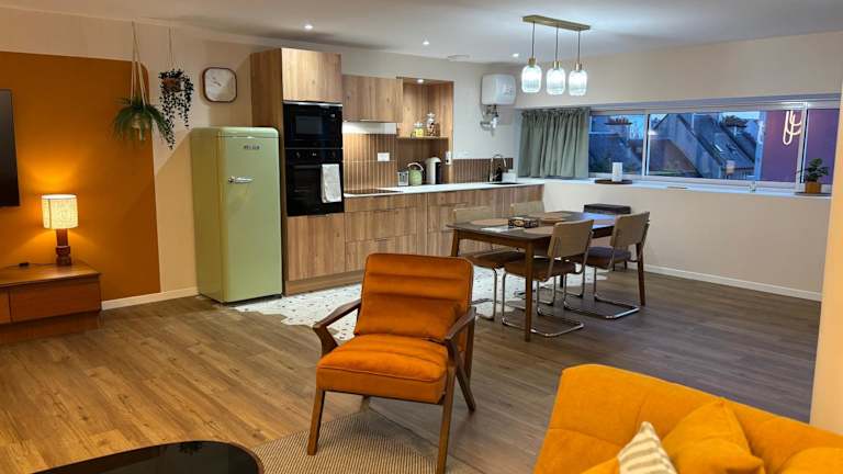 Die Ferienwohnung besteht aus zwei Schlafzimmern, einem Wohnzimmer und einer voll ausgestatteten Küche, die unter anderem einen Kühlschrank und eine Kaffeemaschine umfasst. Das Badezimmer ist mit einer Dusche sowie kostenlosen Pflegeprodukten ausgestattet. Handtücher und Bettwäsche werden zur Verfügung gestellt. Es gibt auch eine Auswahl an Brettspielen und Puzzles für die Freizeitgestaltung.