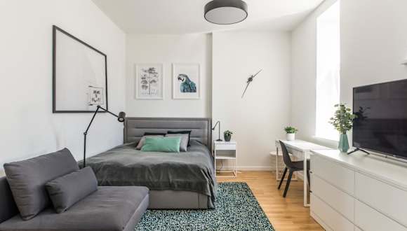 Das Cozy Modern Studio bietet Ihnen ein komfortables und gemütliches Apartment. Das Studio verfügt über ein QueenSize Bett und ist mit einem Flachbild-TV ausgestattet, damit Sie Ihre Lieblingssendungen nicht verpassen. Die Küche ist mit einem Kühlschrank und einem Geschirrspüler ausgestattet, so dass Sie Ihre eigenen Mahlzeiten zubereiten können. Eine Waschmaschine steht ebenfalls zur Verfügung, um Ihren Aufenthalt so bequem wie möglich zu gestalten. Handtücher und Bettwäsche werden gestellt, so dass Sie sich um nichts kümmern müssen.