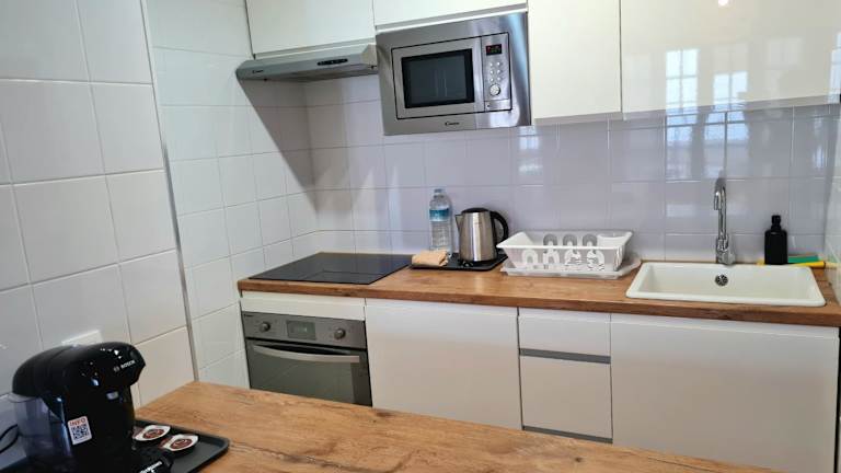 Die Ferienwohnung besteht aus einem Schlafzimmer, einem Wohnzimmer, einer voll ausgestatteten Küche mit Kühlschrank sowie einem Badezimmer mit Dusche und Haartrockner. Zu den Annehmlichkeiten gehören auch Handtücher und Bettwäsche. Die Unterkunft bietet Einheiten mit Balkon.
