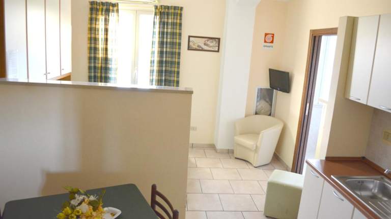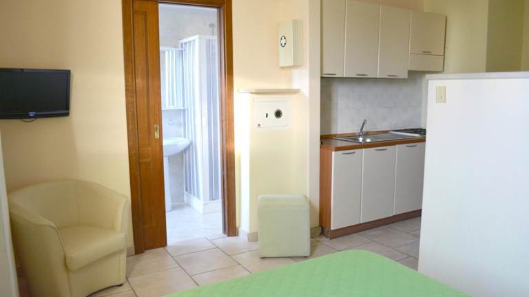 Die Ferienwohnung verfügt über ein Schlafzimmer, eine Sitzecke, einen Fernseher sowie eine Küche, die mit einem Kühlschrank ausgestattet ist. Handücher und Bettwäsche werden bereitgestellt.