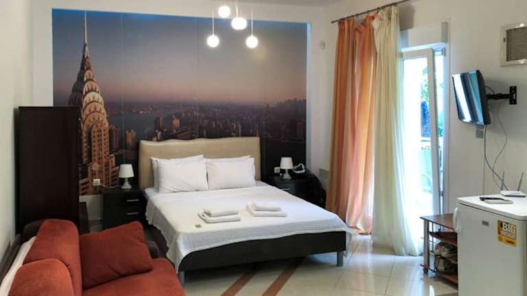 Das klimatisierte Studio-Apartment verfügt über ein gemütliches Schlafzimmer, in dem Sie sich nach einem langen Tag am Strand ausruhen können. Das Apartment verfügt außerdem über einen Flachbild-Sat-TV und einen Essbereich, in dem Sie Ihre Mahlzeiten genießen können. Die gut ausgestattete Küche bietet alles, was Sie für die Zubereitung von Speisen benötigen, und das Wohnzimmer lädt zum Entspannen ein. Handtücher und Bettwäsche werden gestellt, um Ihren Aufenthalt noch angenehmer zu gestalten.