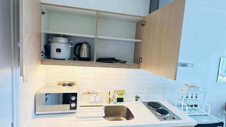 Das Cozy Studio Penthouse bietet einen Außenpool und einen Conciergeservice. Es handelt sich um eine klimatisierte Ferienwohnung mit modernen Annehmlichkeiten, die die Bedürfnisse der Gäste erfüllt.