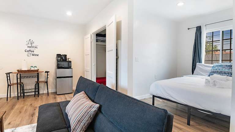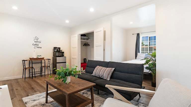 Das Cozy Ground-Floor Studio Near Beverly Hills Dining & Pico Blvd bietet eine klimatisierte Ferienwohnung mit einem Schlafzimmer und einer Küchenzeile. Die Unterkunft verfügt über kostenfreies WLAN sowie einen Privatparkplatz und ist als Nichtraucherunterkunft gestaltet.